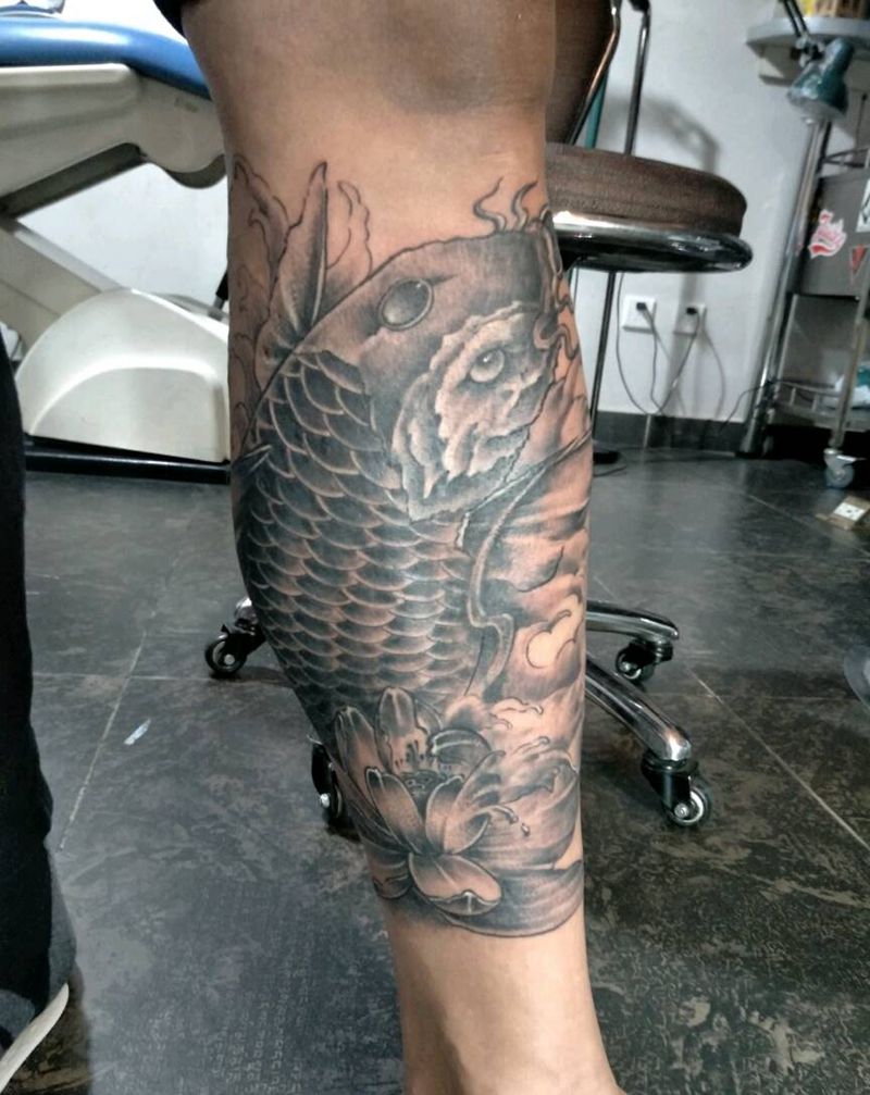• T网红王老大花腿龙纹身图片_腿部新传统纹身图案