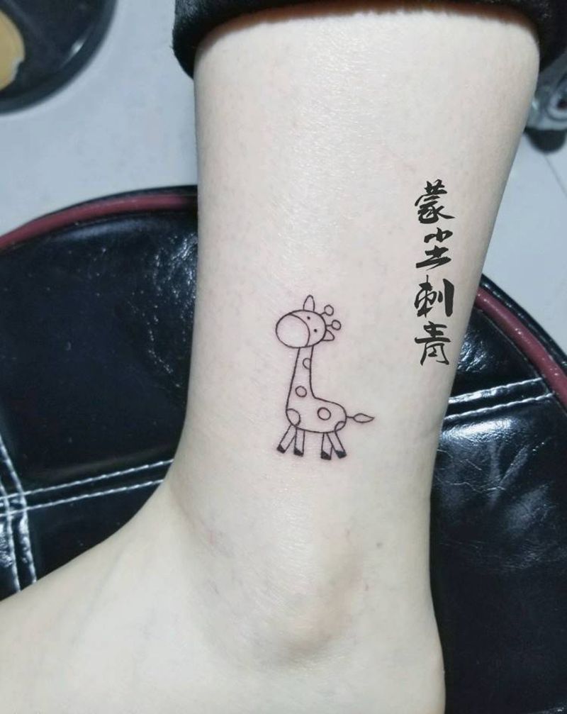 长颈鹿,小清新纹身图片_腿部清新动物成品纹身图案