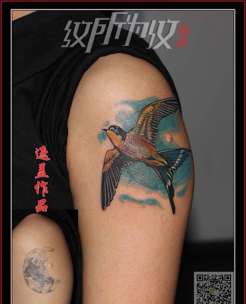 当前位置: 首页 >新疆乌鲁木齐市纹身店-纹所为纹刺青纹身图案>遮盖作品-燕子纹身图片