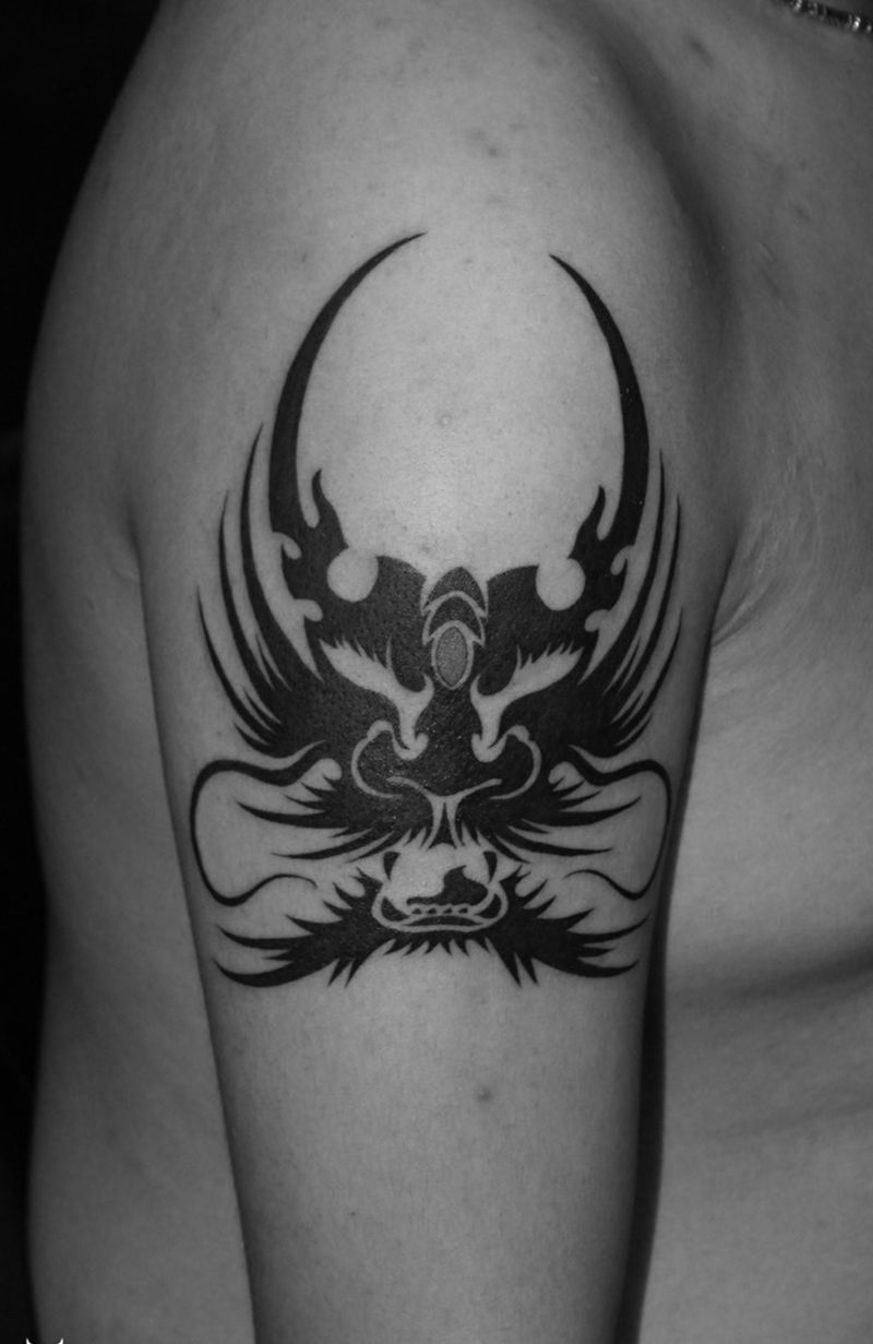 当前位置: 首页 >新疆乌鲁木齐市纹身店-纹所为纹刺青纹身图案>大臂抽象龙头纹身图片