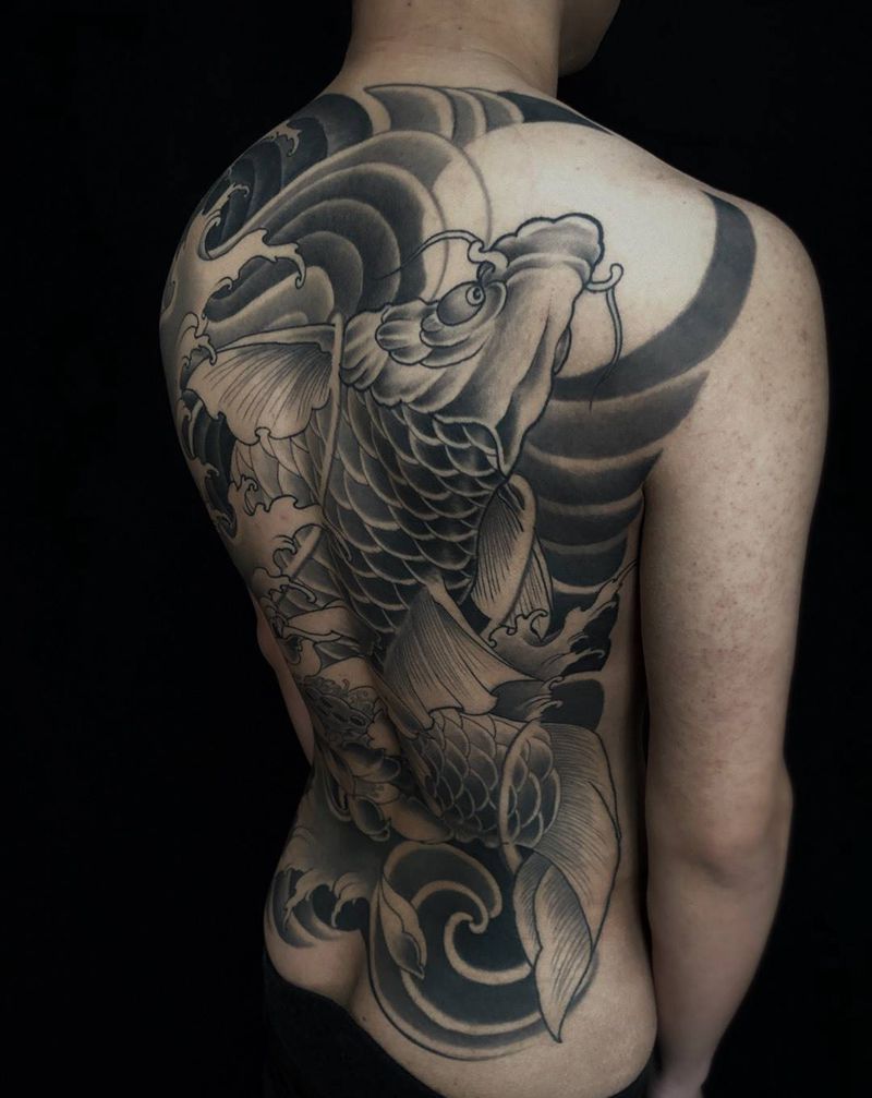 • 黑灰满背纹身图案