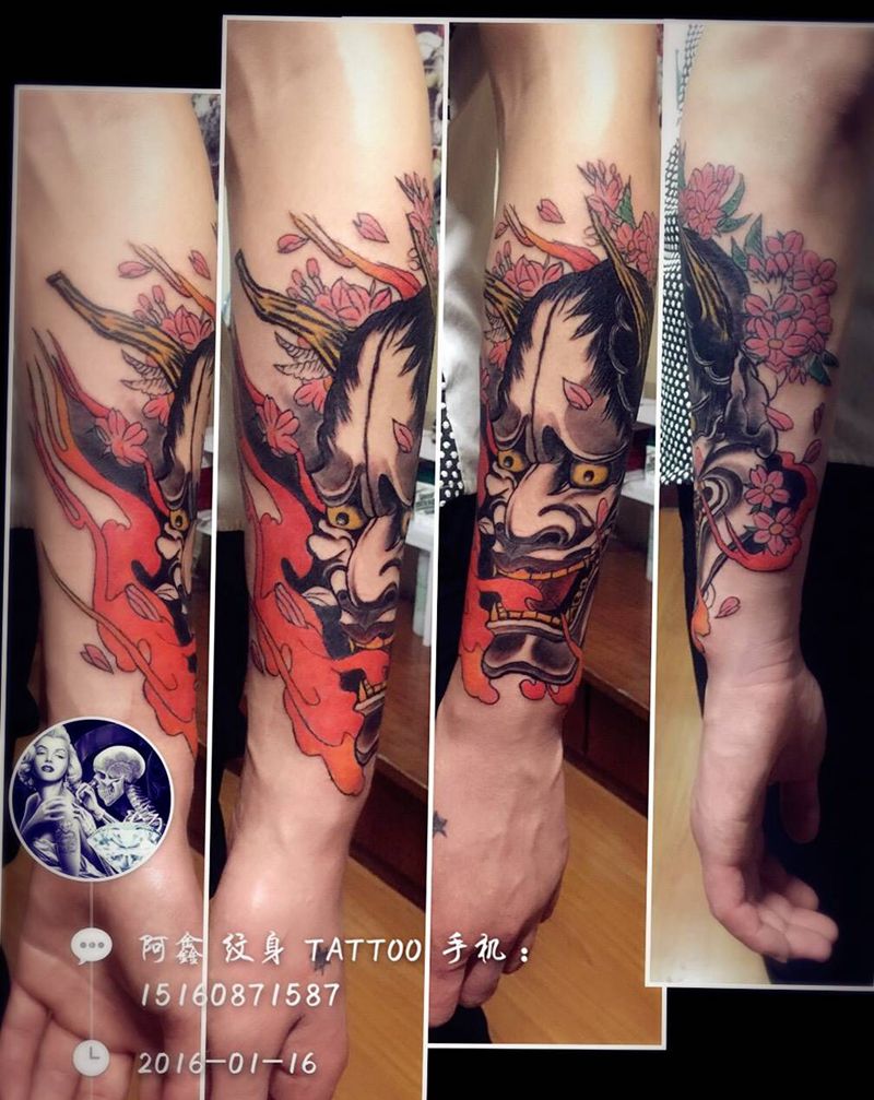 小臂#般若#纹身图片_成品手臂传统鬼神纹身图案