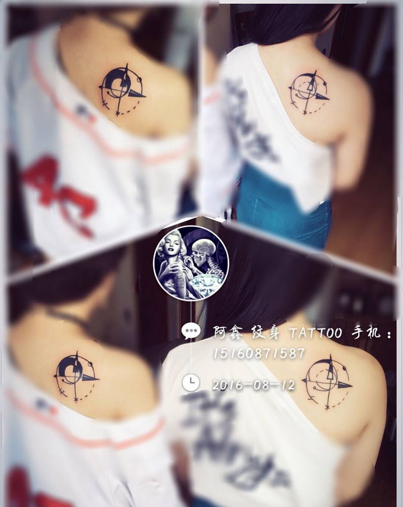 后肩#几何图#纹身图片_成品肩部清新几何纹身图案