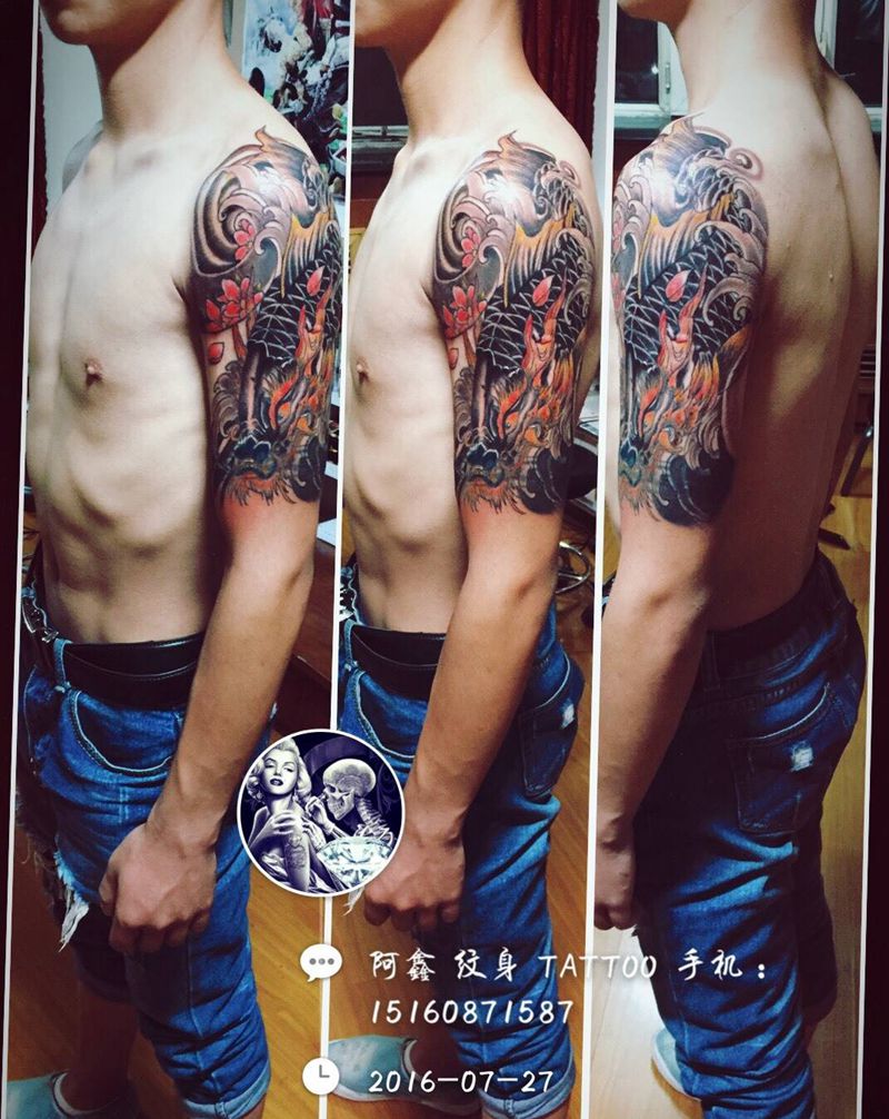 大臂#鳌鱼遮盖#纹身图片_成品手臂传统动物纹身图案