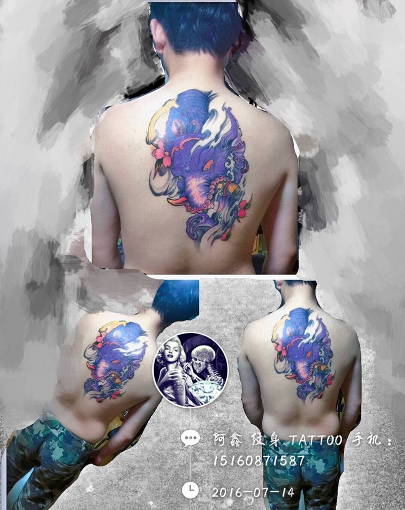 背部#象神遮盖#纹身图片_成品背部传统动物纹身图案