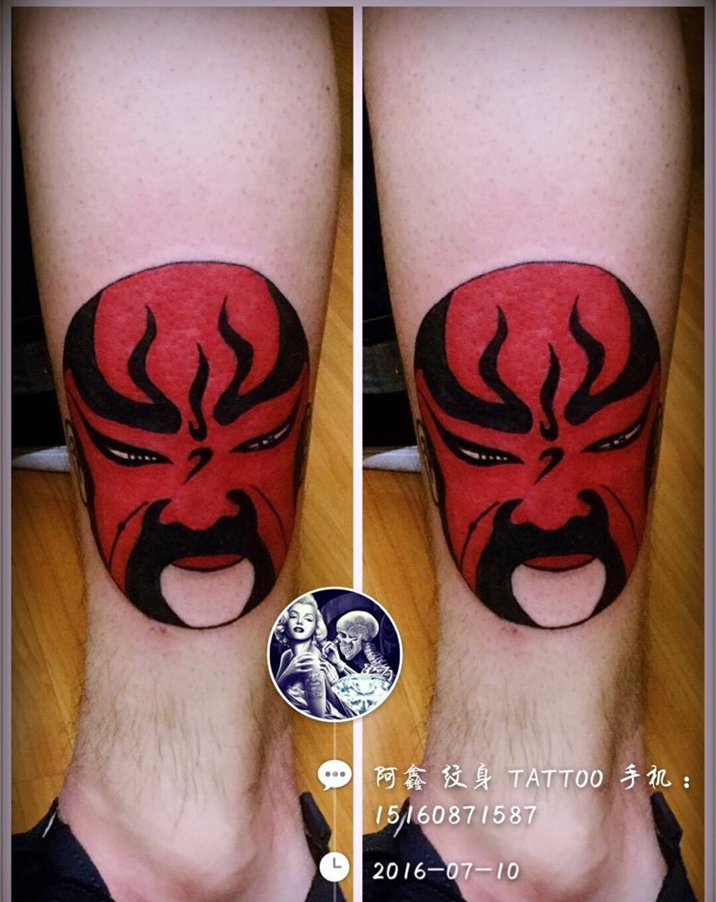 小腿#脸谱#纹身图片_成品腿部习俗人物纹身图案