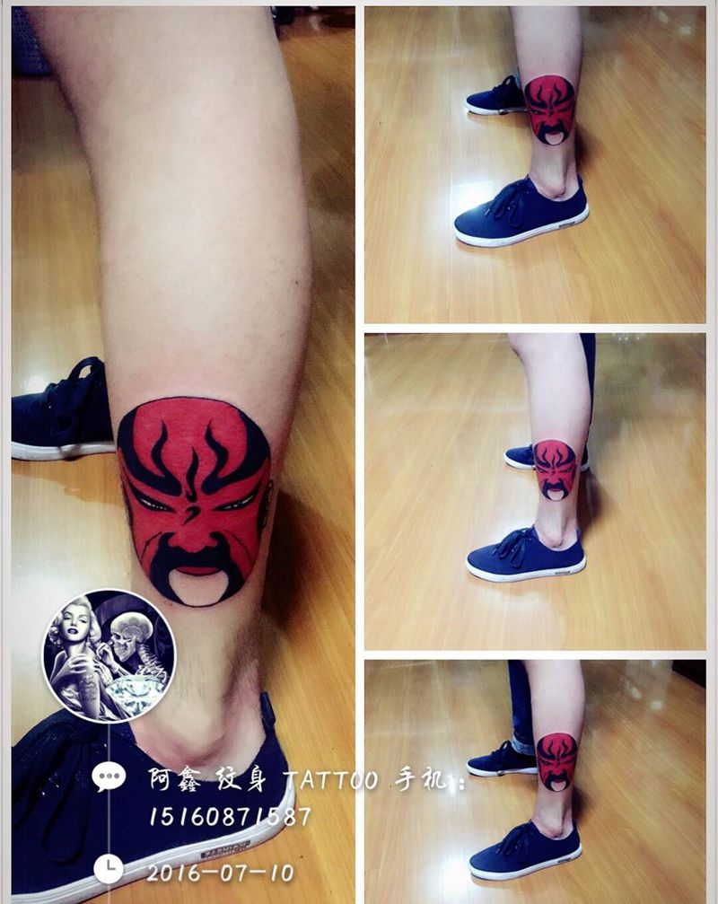 小腿#脸谱#纹身图片_成品腿部习俗人物纹身图案