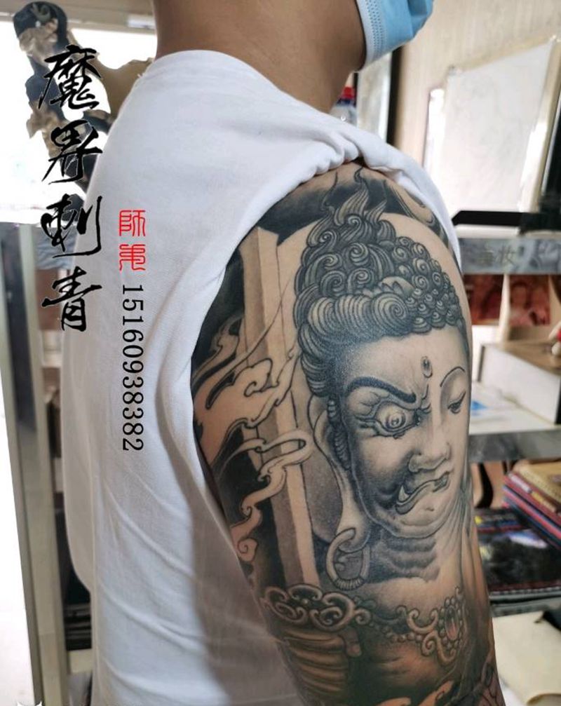 恢复半年后对比纹身图片_手臂新传统善恶明王纹身图案