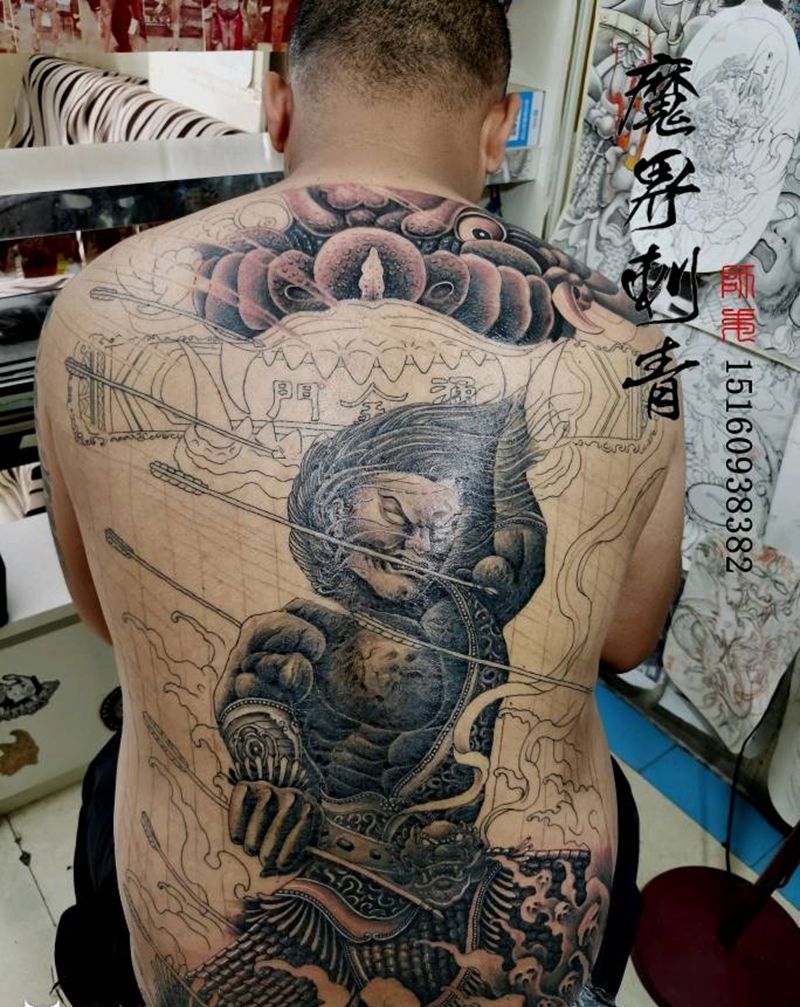 当前位置: 首页 >新疆乌鲁木齐市纹身店-魔界纹身纹身图案>满背张顺纹身图片_背部新传统满背张顺水浒人物满背黑灰纹身图案