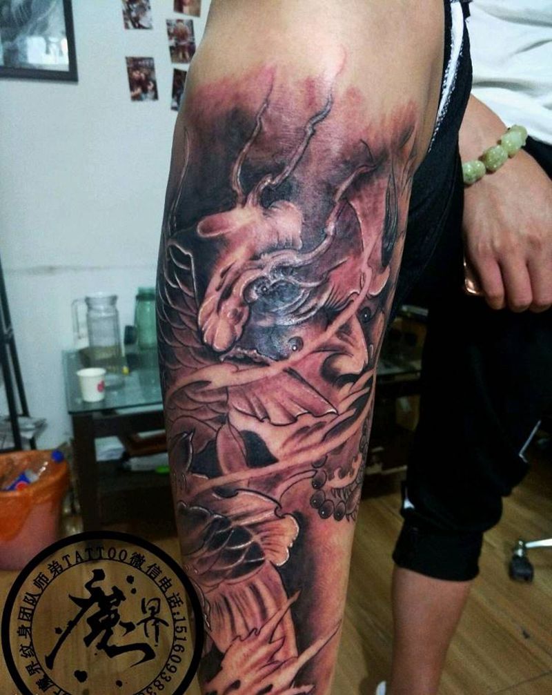 • T网红王老大花腿龙纹身图片_腿部新传统纹身图案