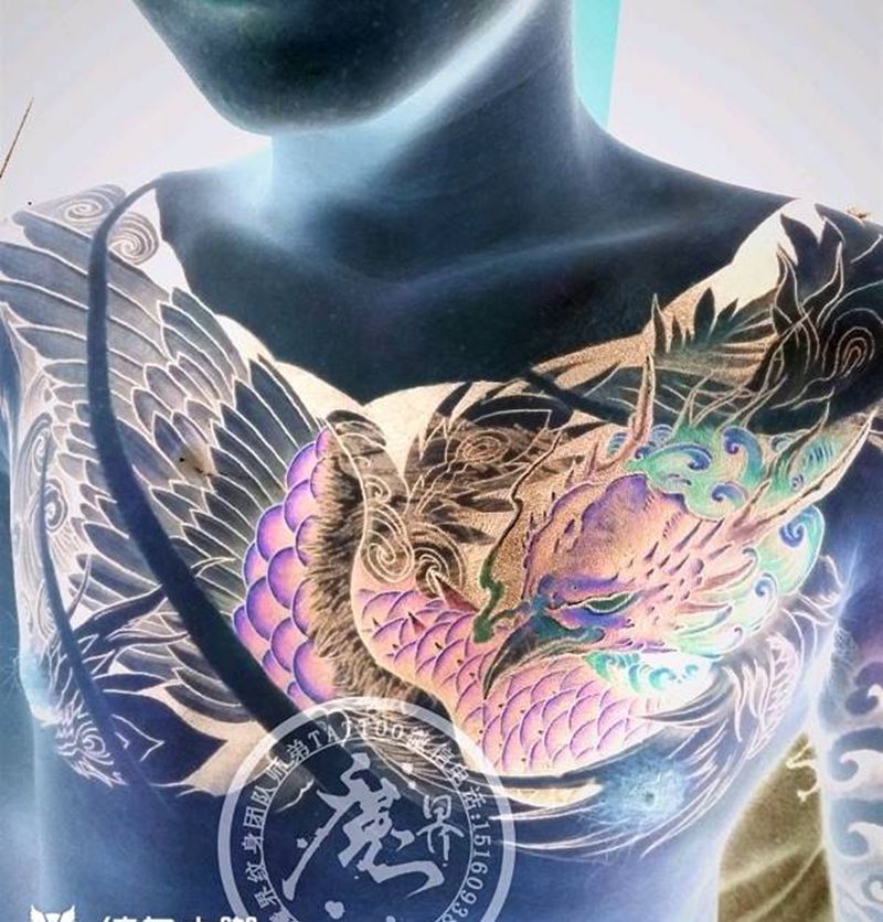 黑灰满背纹身图案