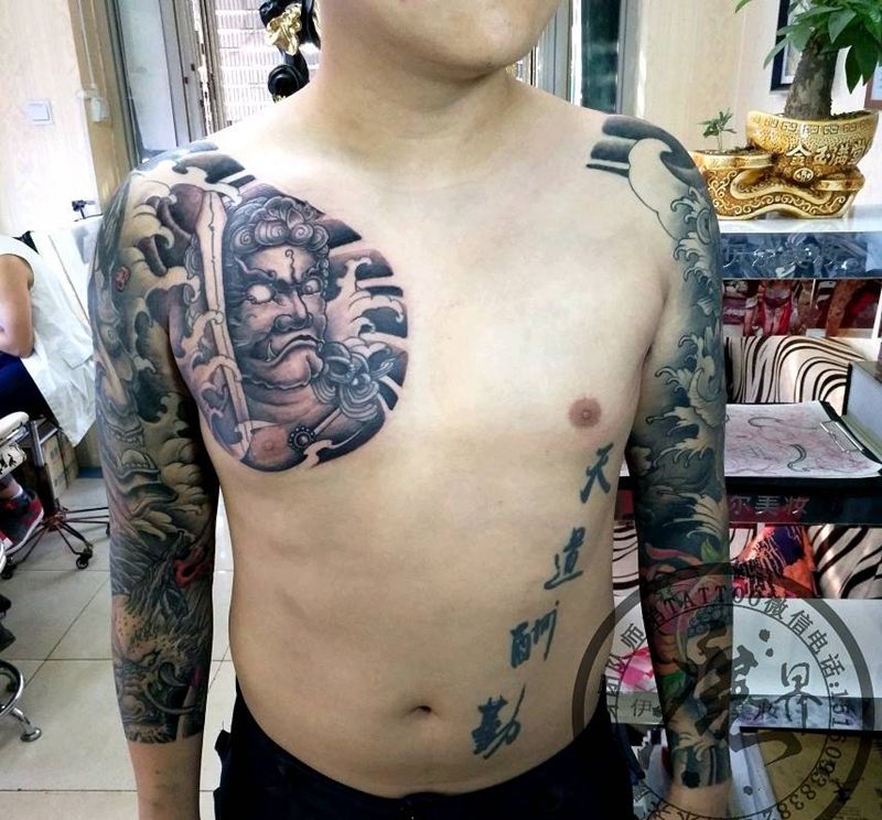 黑灰满背纹身图案