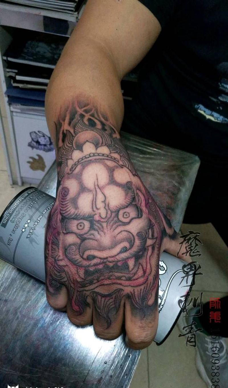 当前位置: 首页 >新疆乌鲁木齐市纹身店-魔界纹身纹身图案>唐狮纹身图片_手部老传统手背唐狮福狮纹身图案