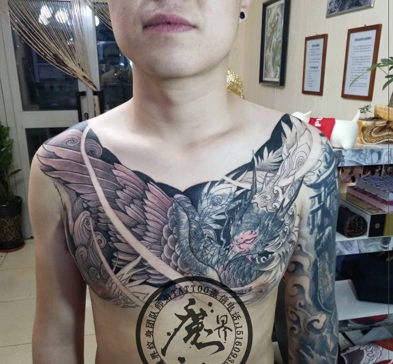 青鸾花胸(遮盖)纹身图片_胸部传统动物鬼神宗教成品纹身图案