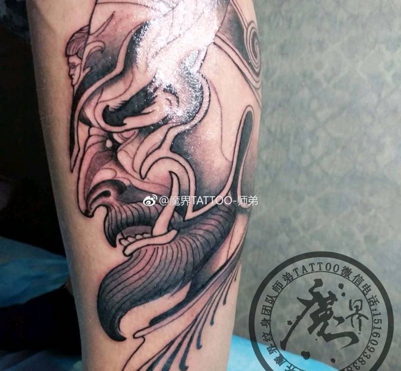 • T网红王老大花腿龙纹身图片_腿部新传统纹身图案