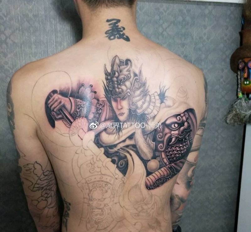 满背赵子龙 进度纹身图片_背部新传统赵子龙纹身图案