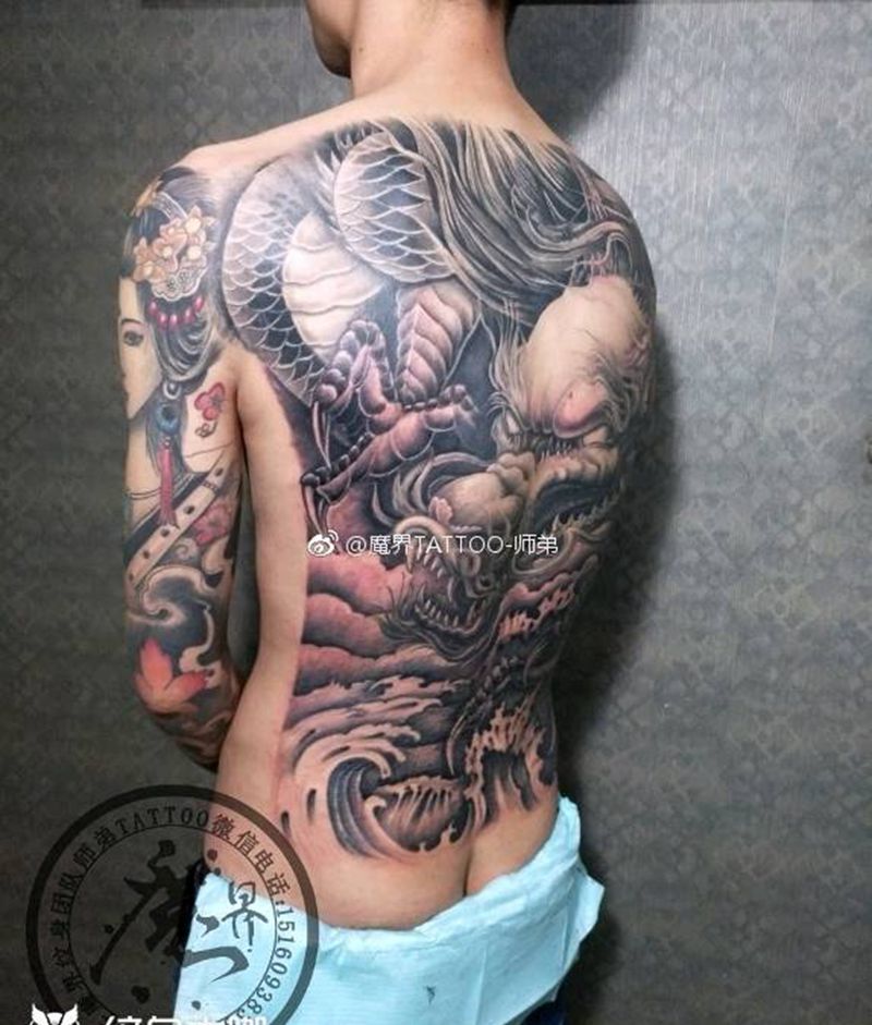 黑灰满背纹身图案