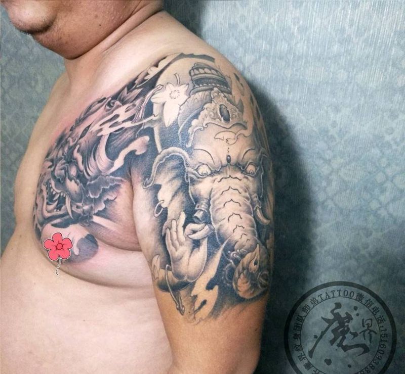 当前位置: 首页 >新疆乌鲁木齐市纹身店-魔界纹身纹身图案>半甲纹身图片_肩部胸部新传统纹身图案