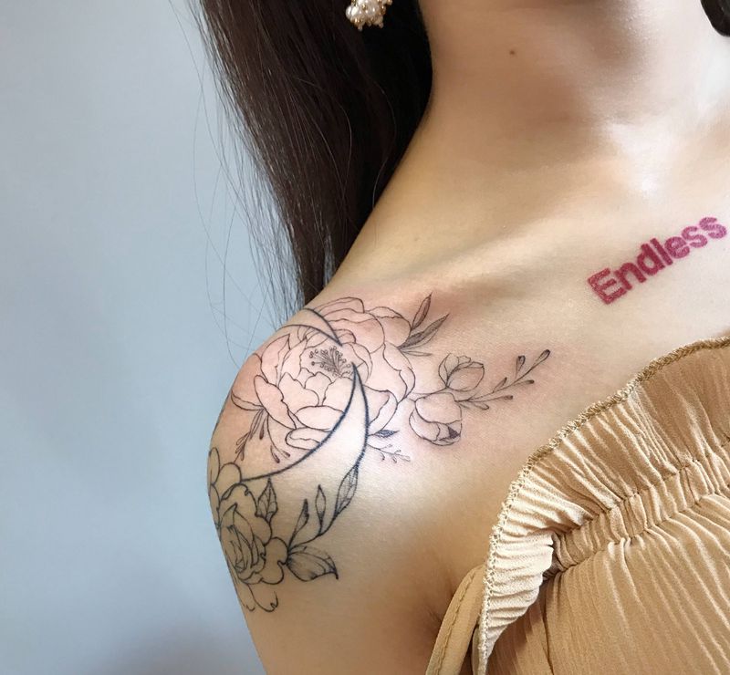 • 女性大花胸纹身_43张霸气漂亮的女性大花胸纹身图案作品