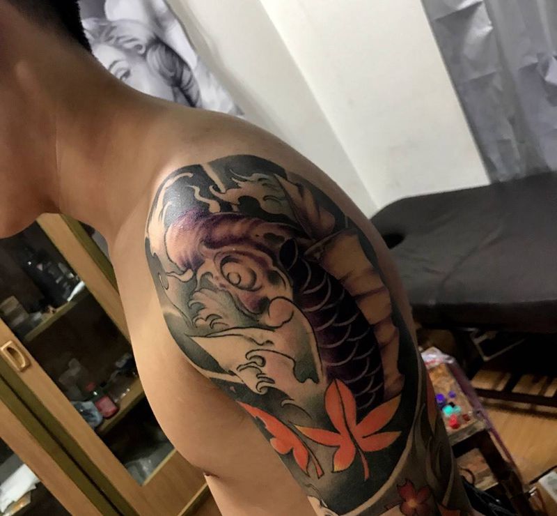 • 纹身吧推荐的披肩图腾半胛纹身图案作品展示