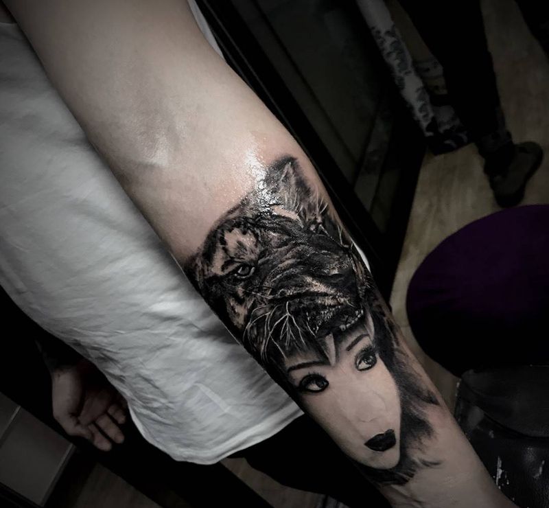 当前位置: 首页 >新疆乌鲁木齐市纹身店-峙刺青·TATTOO纹身图案>肖像 老虎写实纹身图片