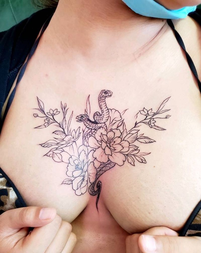 内心的小蛇纹身图片_胸部新传统纹身图案