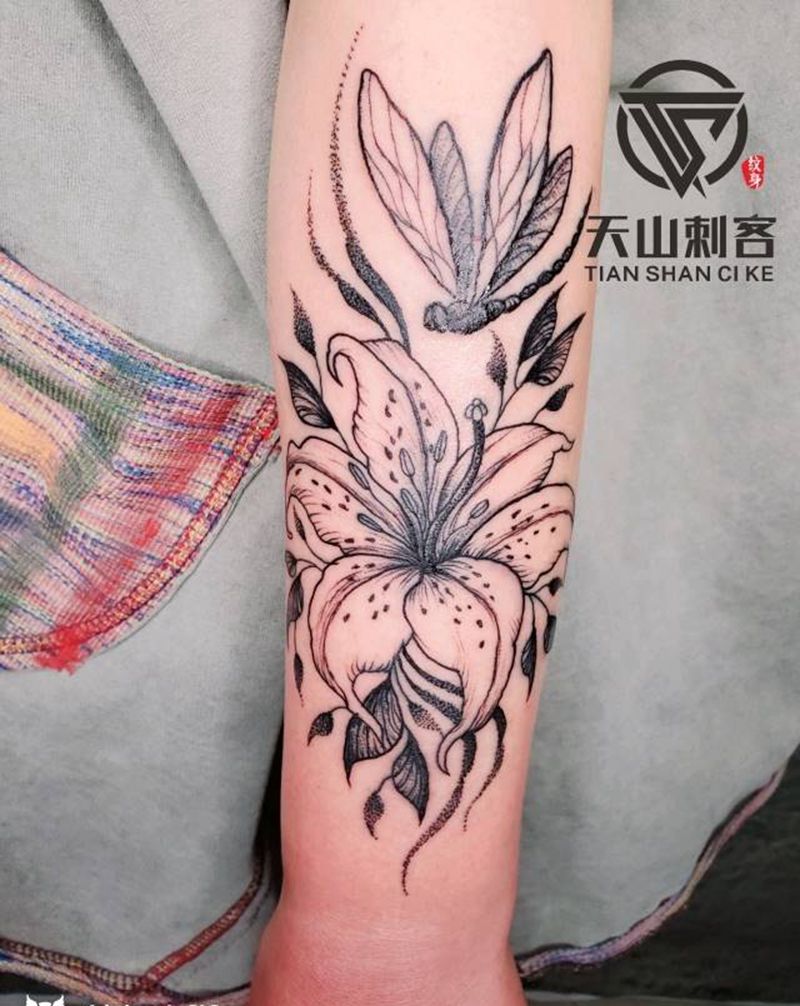 当前位置: 首页 >新疆乌鲁木齐市纹身店-天山刺客纹身图案>百合纹身图片_手臂点刺纹身图案