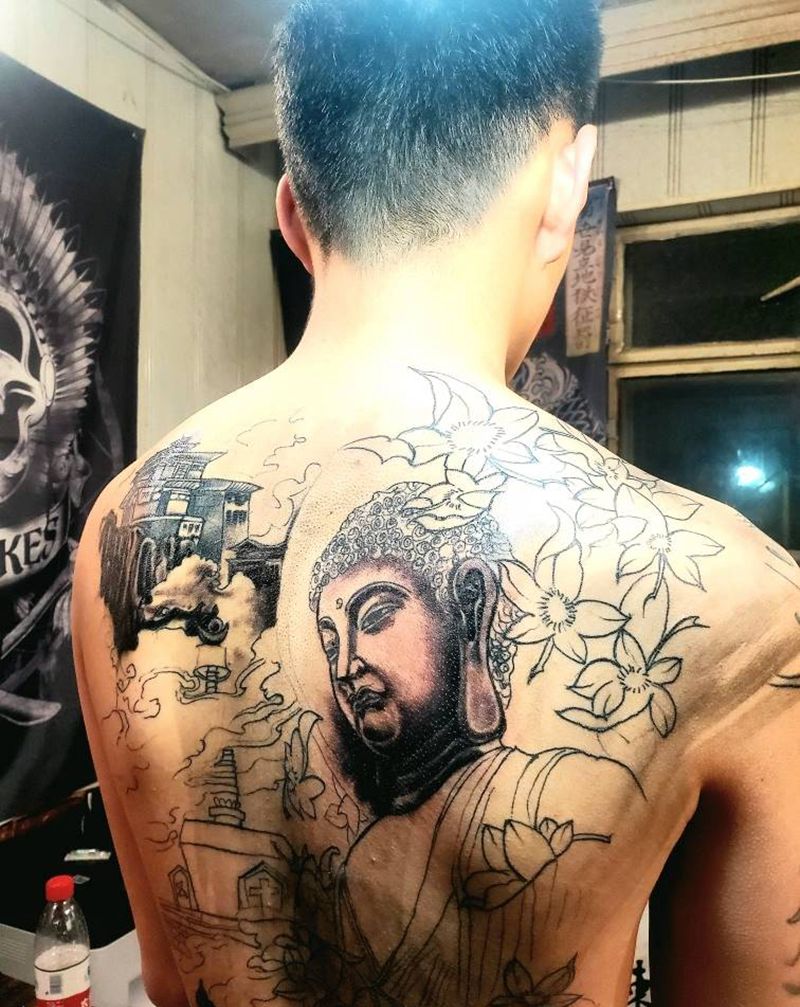 • 黑灰满背纹身图案