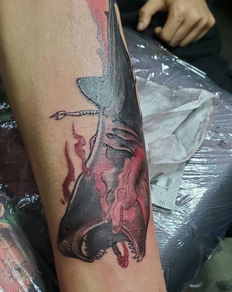 当前位置: 首页 >新疆乌鲁木齐市纹身店-天山刺客纹身图案>鲨鱼纹身图片_手臂纹身图案