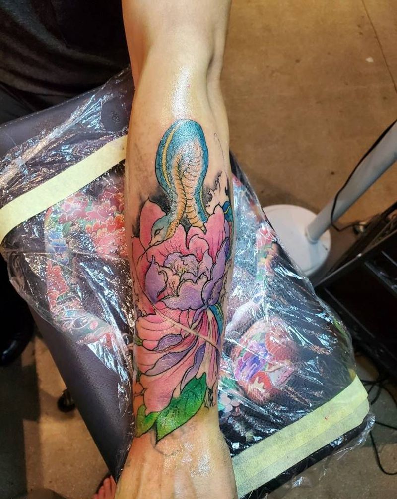 当前位置: 首页 >新疆乌鲁木齐市纹身店-天山刺客纹身图案>淡彩花蛇纹身图片_手臂新传统纹身图案
