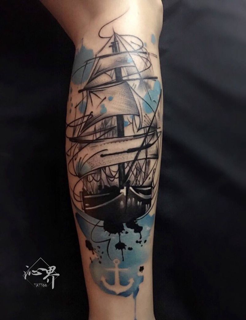 当前位置: 首页 >新疆乌鲁木齐市纹身店-沁界刺青纹身图案>一帆风顺纹身图片_手稿腿部传统静物纹身图案