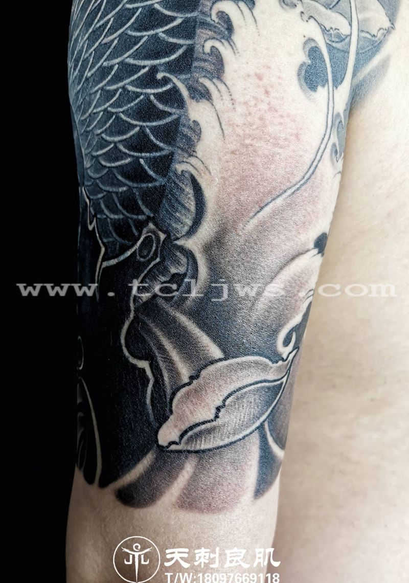 鳌鱼纹身 鱼纹身遮盖纹身图片_手臂胸部新传统鳌鱼鱼遮盖纹身图案