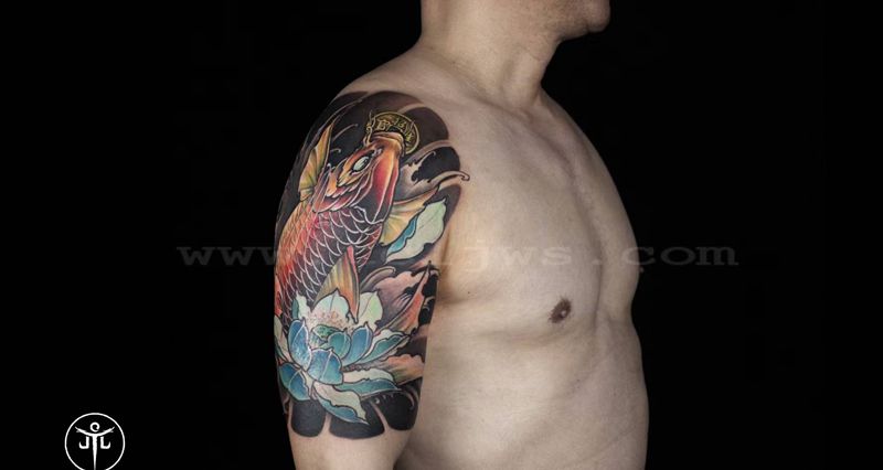 锦鲤纹身 鲤鱼纹身纹身图片_手臂新传统鲤鱼锦鲤纹身图案