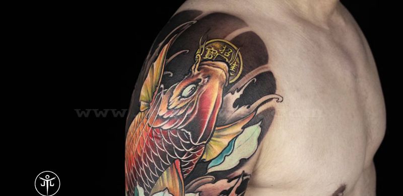 锦鲤纹身 鲤鱼纹身纹身图片_手臂新传统鲤鱼锦鲤纹身图案