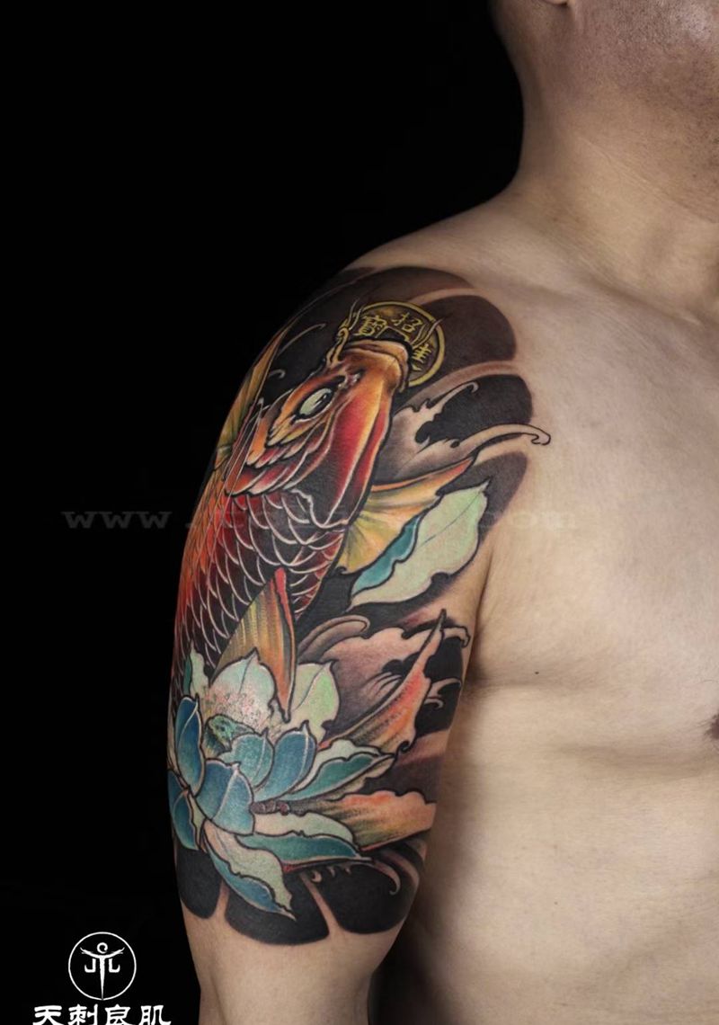 锦鲤纹身 鲤鱼纹身纹身图片_手臂新传统鲤鱼锦鲤纹身图案