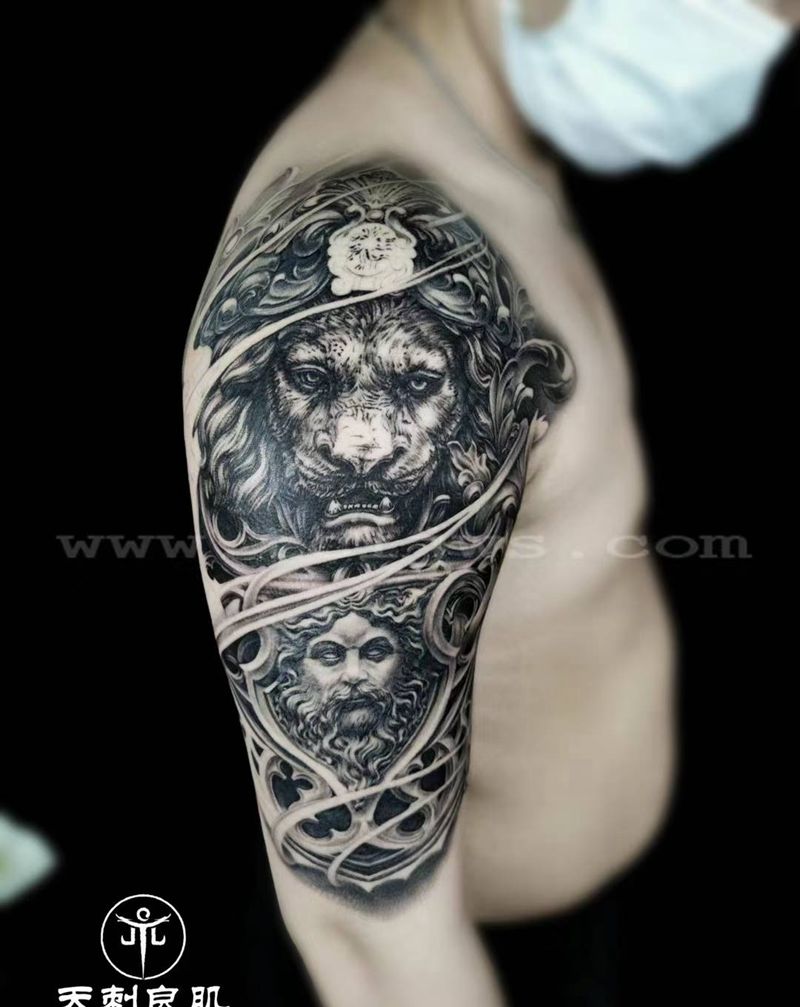 当前位置: 首页 >新疆乌鲁木齐市纹身店-新疆乌鲁木齐天刺良肌纹身纹身图案>狮子雕塑纹身纹身图片_手臂欧美写实窗花狮子纹身图案