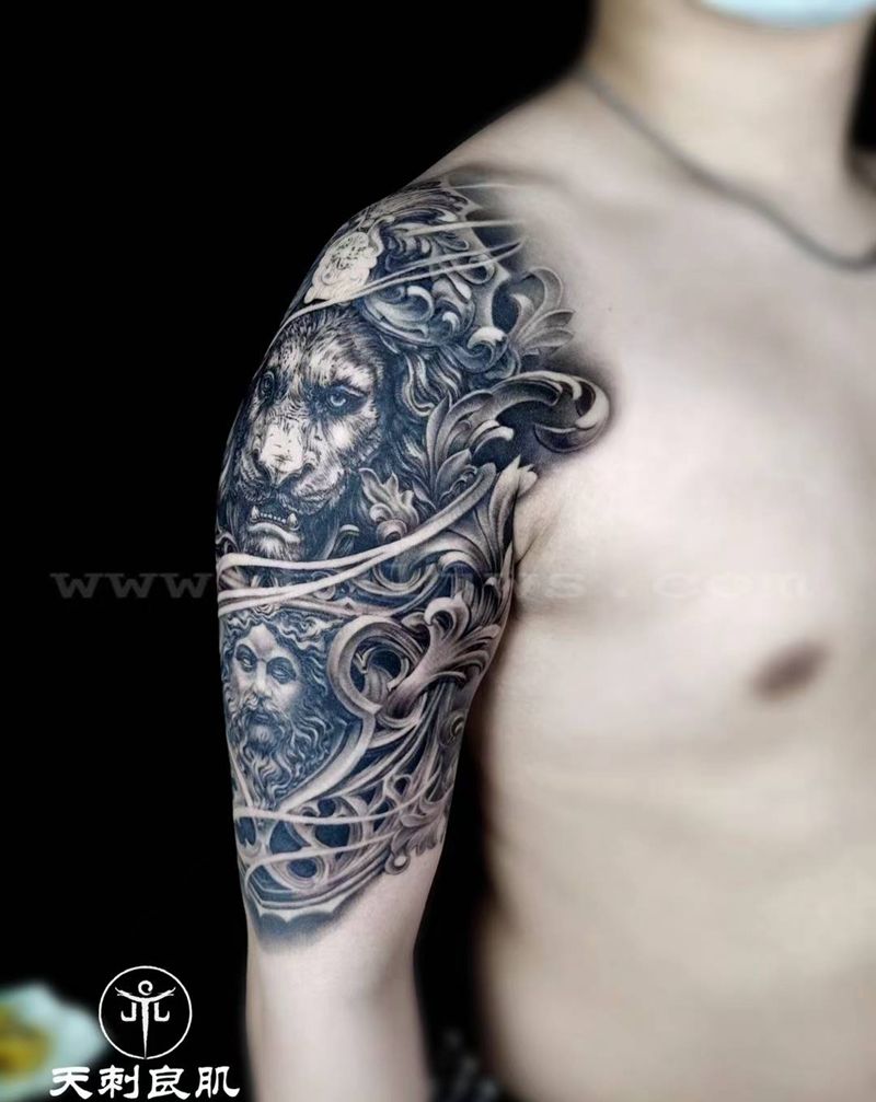 当前位置: 首页 >新疆乌鲁木齐市纹身店-新疆乌鲁木齐天刺良肌纹身纹身图案>狮子雕塑纹身纹身图片_手臂欧美写实窗花狮子纹身图案