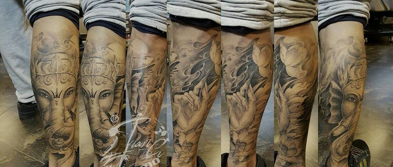 一组15张莲花纹身手