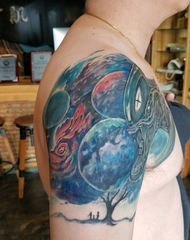 • 纹身吧推荐的披肩图腾半胛纹身图案作品展示