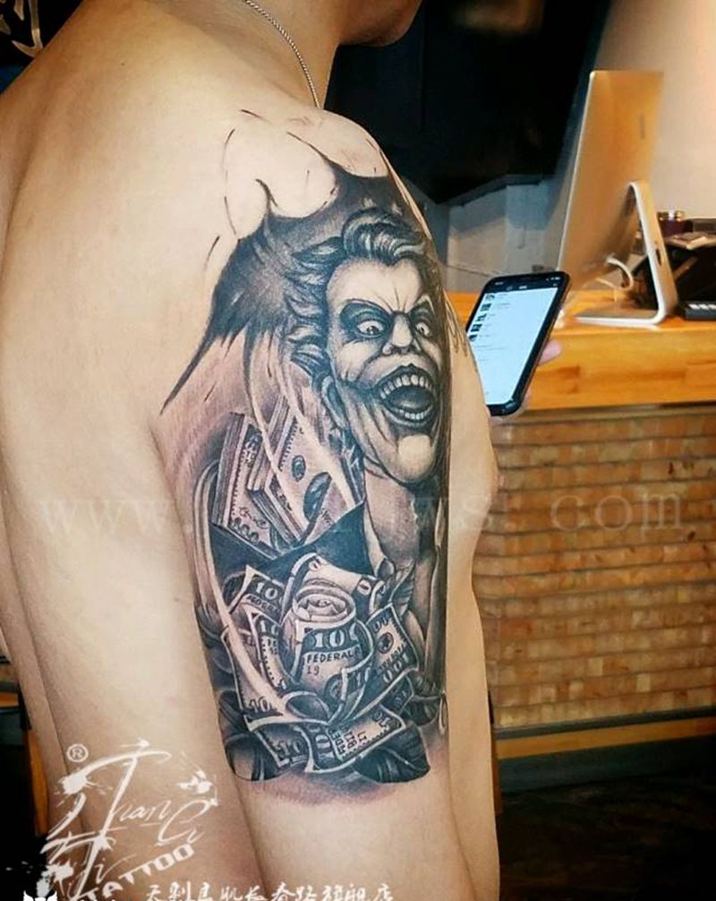 当前位置: 首页 >新疆乌鲁木齐市纹身店-新疆乌鲁木齐天刺良肌纹身纹身图案>小丑纹身纹身图片_手臂欧美肖像人物培训新疆成品纹身图案