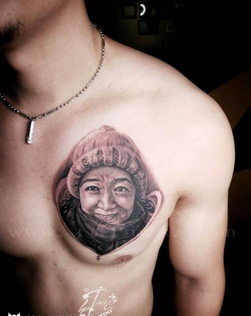 当前位置: 首页 >新疆乌鲁木齐市纹身店-新疆乌鲁木齐天刺良肌纹身纹身图案>妈妈肖像纹身纹身图片_胸部欧美写实肖像纹身图案