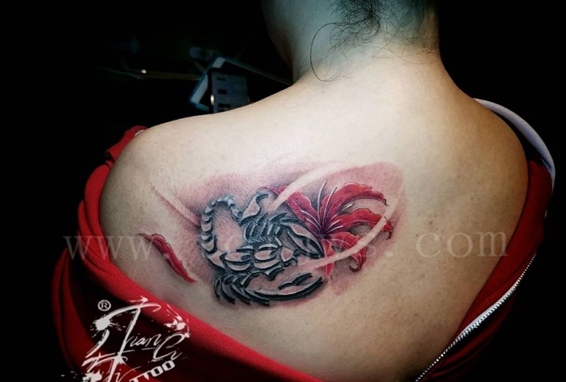 当前位置: 首页 >新疆乌鲁木齐市纹身店-新疆乌鲁木齐天刺良肌纹身纹身图案>绝处逢生-- 蝎子与彼岸花纹身图片_肩部动物植物培训生活新疆成品纹身图案