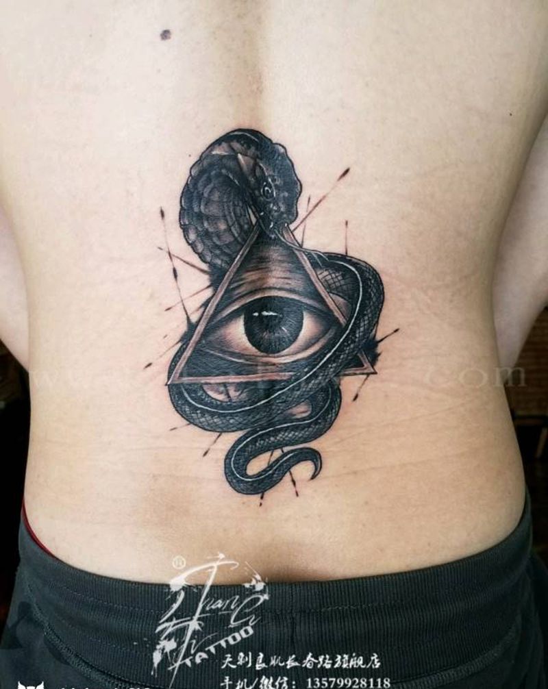 眼睛蛇(眼镜蛇)纹身图片_背部欧美写实纹身图案