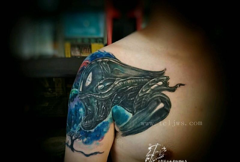 • 纹身吧推荐的披肩图腾半胛纹身图案作品展示