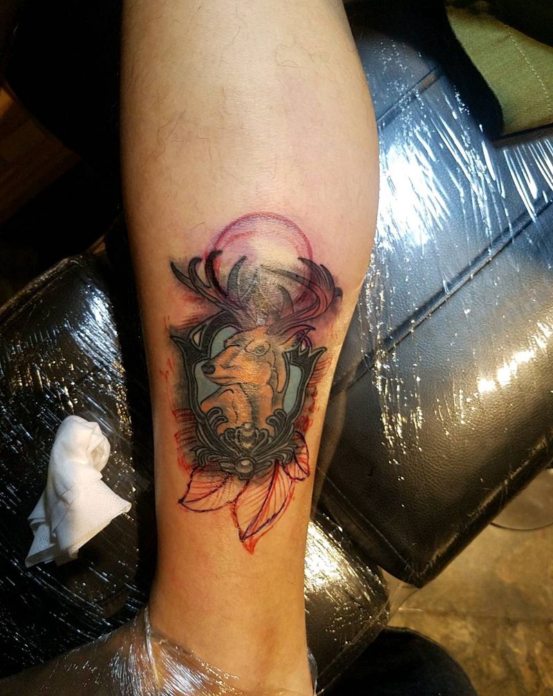 当前位置: 首页 >新疆乌鲁木齐市纹身店-新疆乌鲁木齐天刺良肌纹身纹身图案>修改鹿纹身纹身图片_腿部New School修改鹿纹身图案