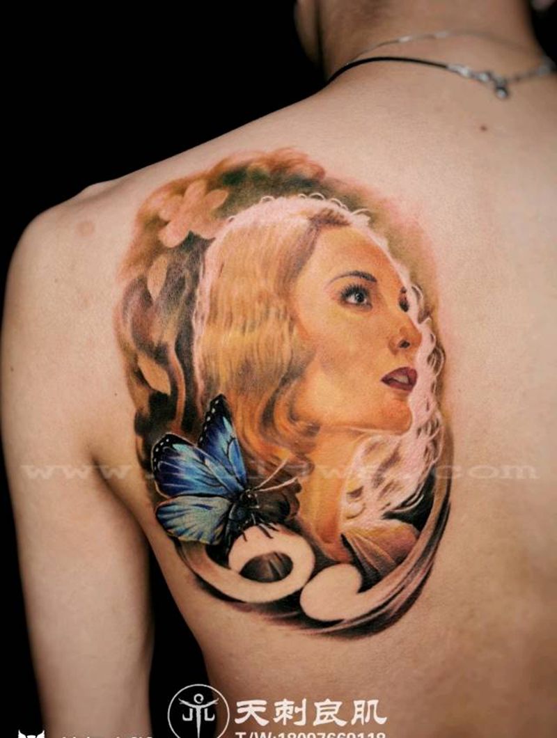 当前位置: 首页 >新疆乌鲁木齐市纹身店-新疆乌鲁木齐天刺良肌纹身纹身图案>人物肖像纹身图片_背部肩部欧美写实纹身图案