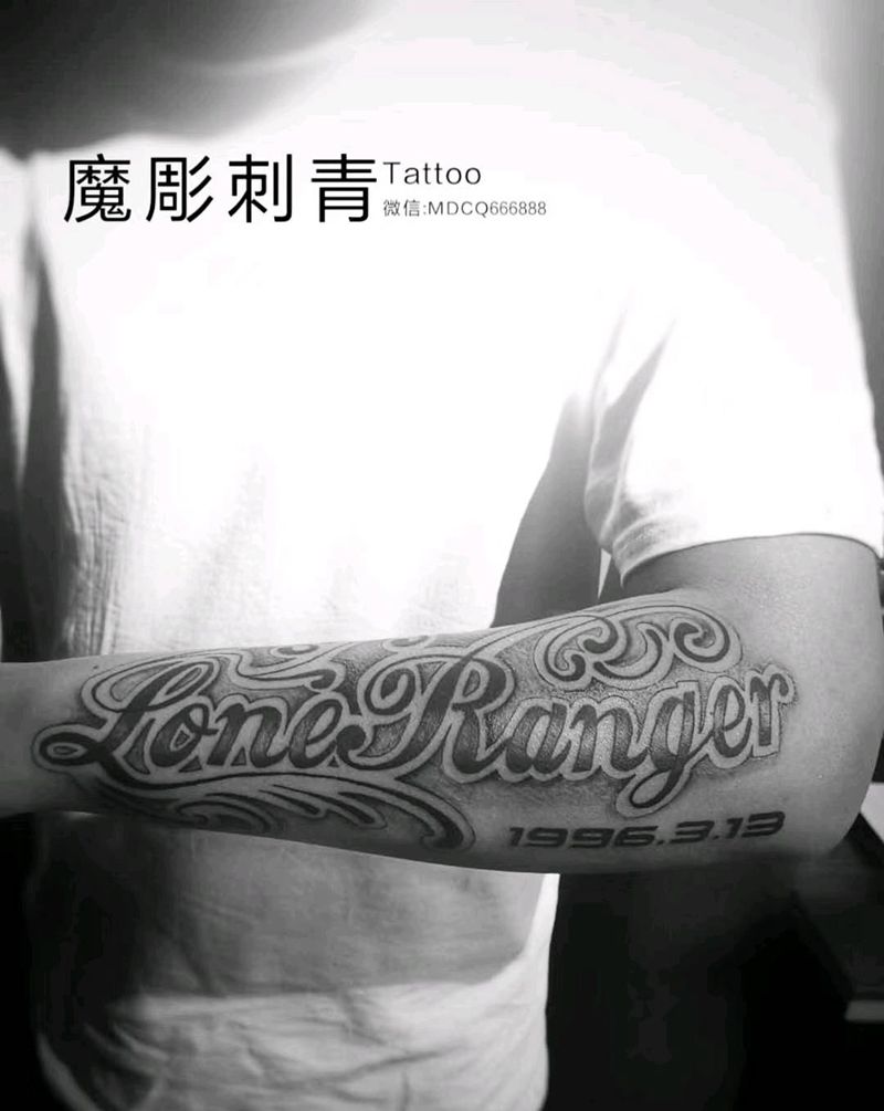 当前位置: 首页 >新疆乌鲁木齐市纹身店-魔彫刺青纹身图案>花体字纹身图片_手臂花体字英文黑白纹身图案