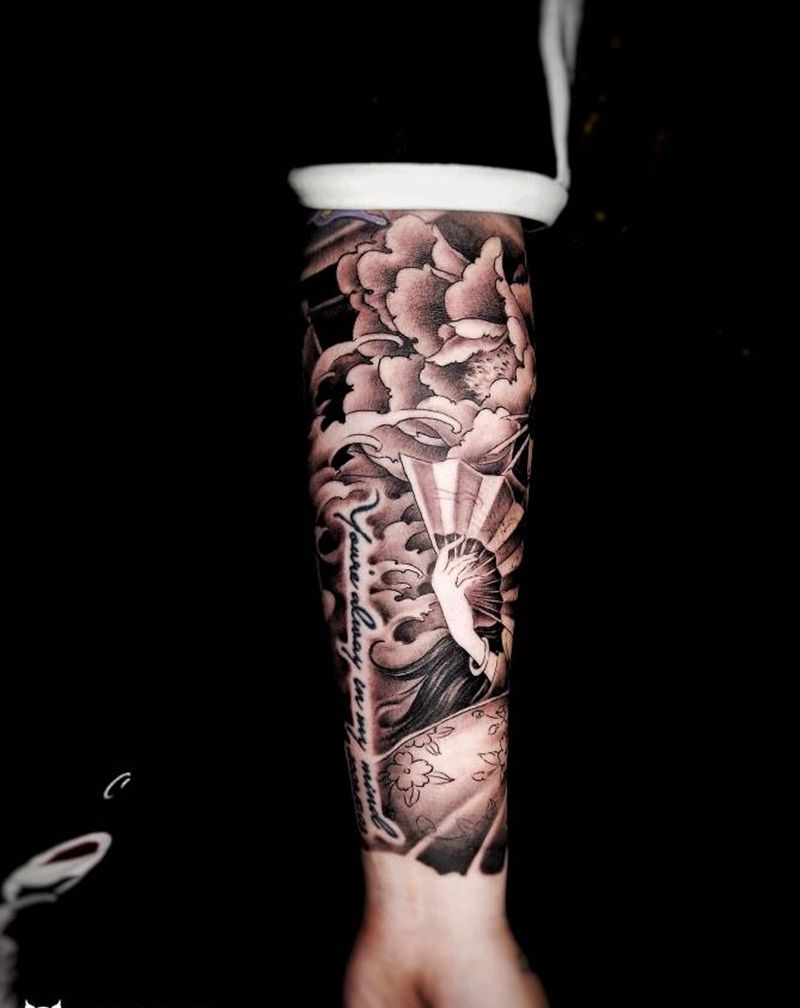 艺妓牡丹纹身图片_手臂新传统纹身图案