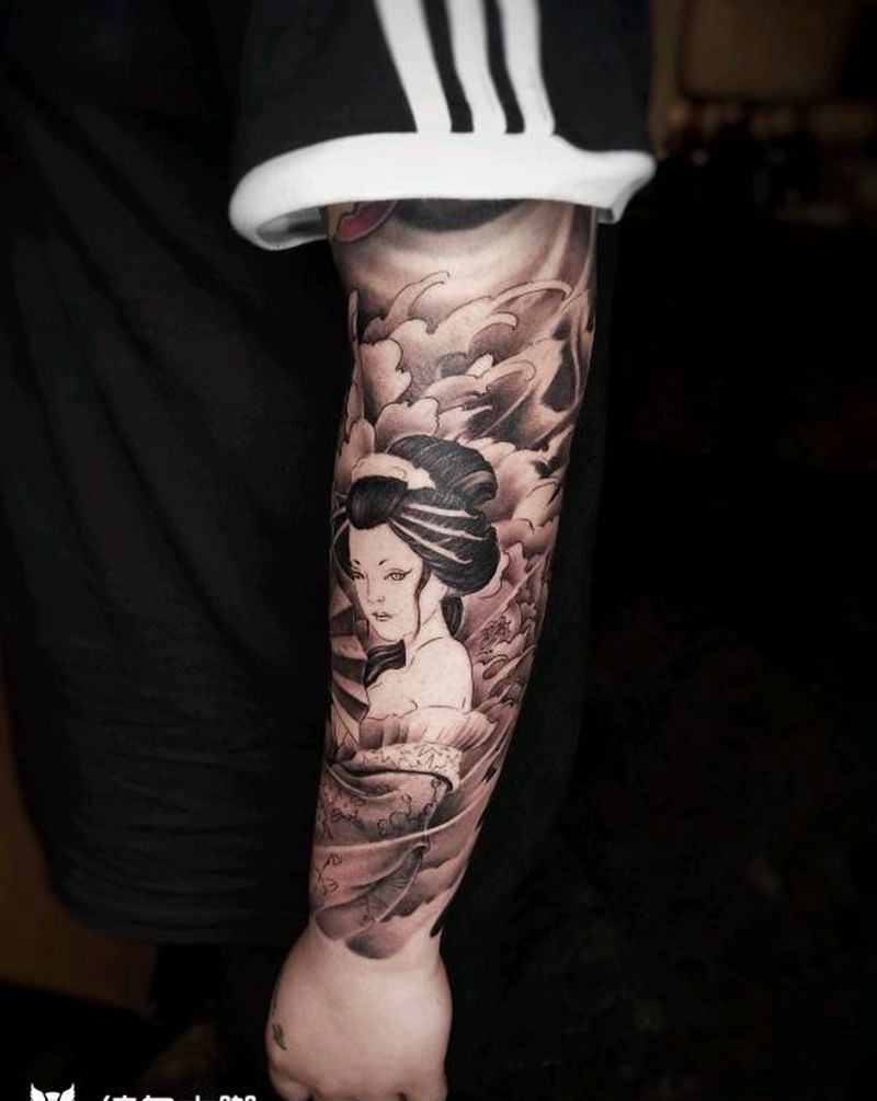 艺妓牡丹纹身图片_手臂新传统纹身图案