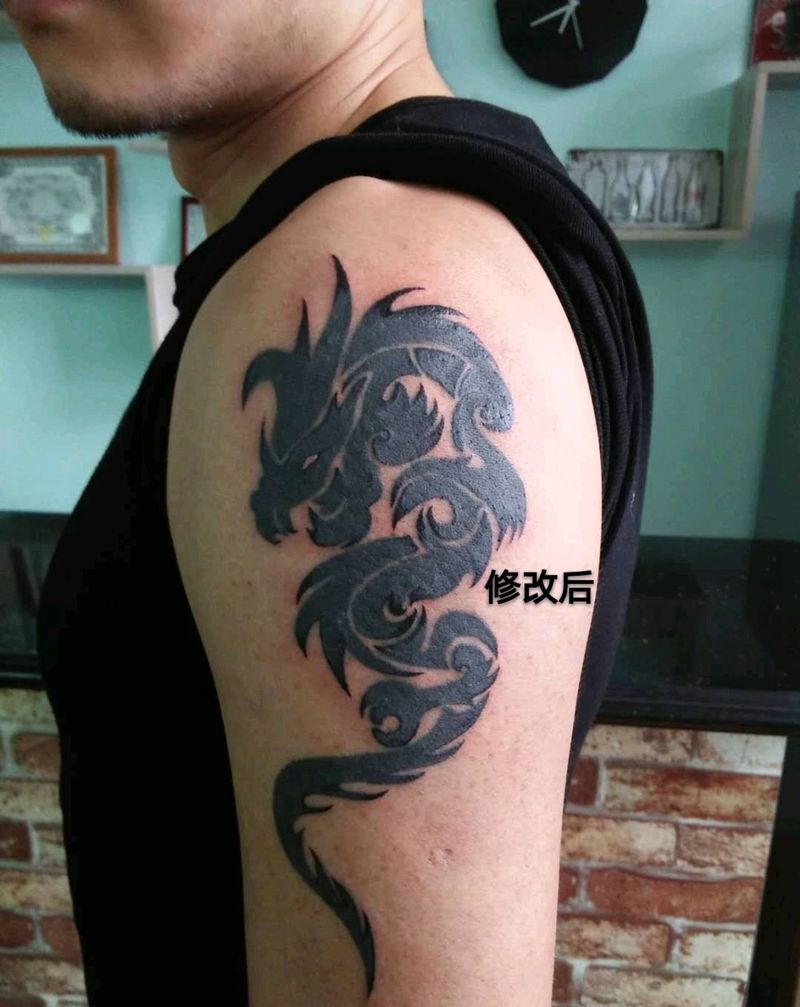 当前位置: 首页 >新疆乌鲁木齐市纹身店-鲲刺青纹身工作室纹身图案>精修手臂巴比龙纹身图片_手臂传统动物图腾简约成品纹身图案